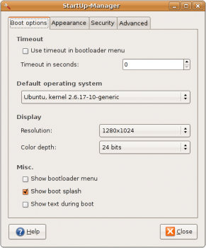 StartUp Manager, o SUM, es una interfaz gráfica que permite cambiar la configuración en la pantalla de carga en Ubuntu, así como diversos aspecto del Grub entre los cuales cabe destacar el poder elegir el sistema operativo a iniciar por defecto.